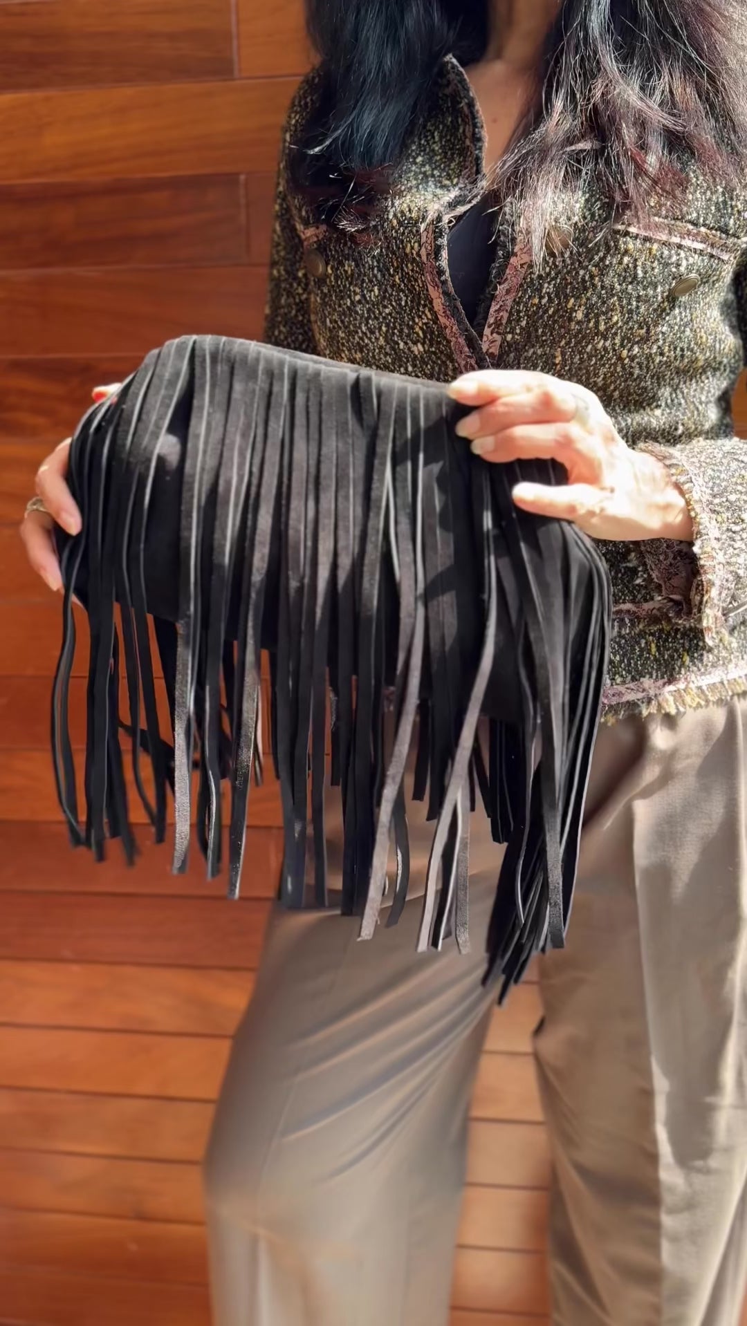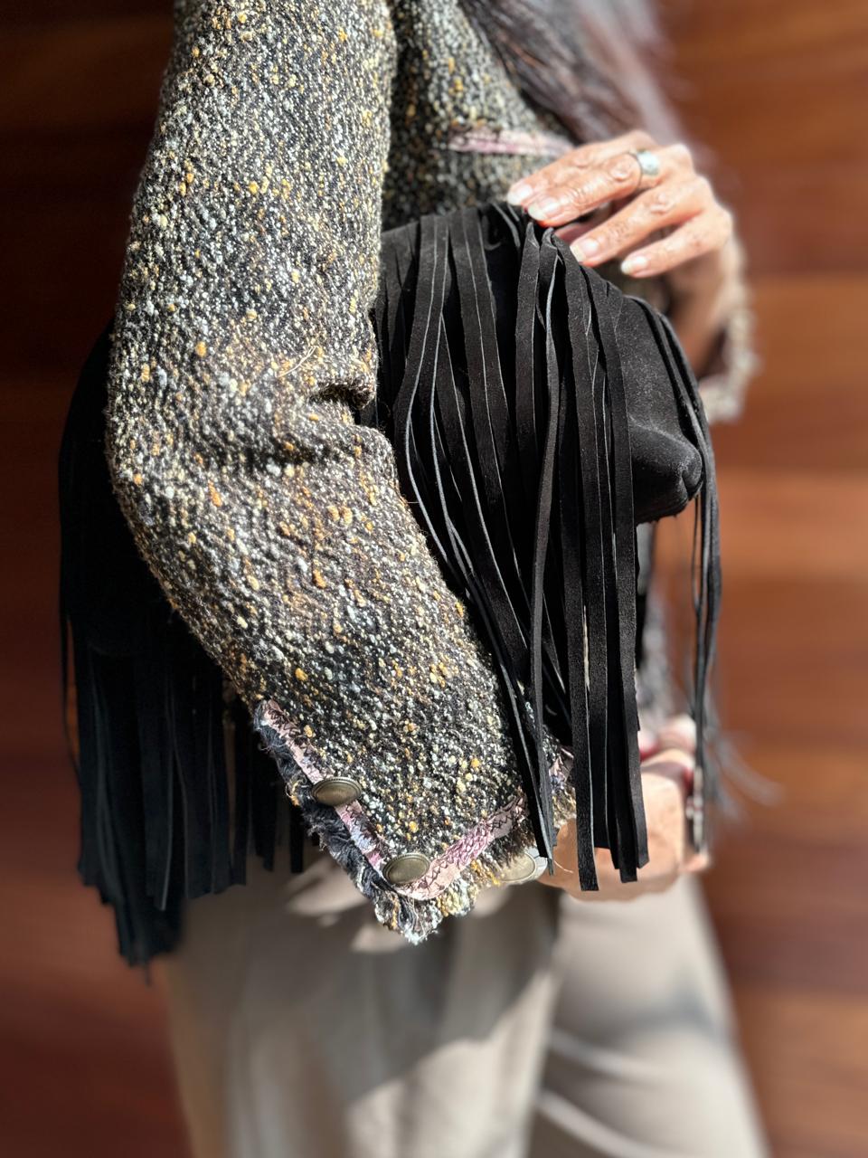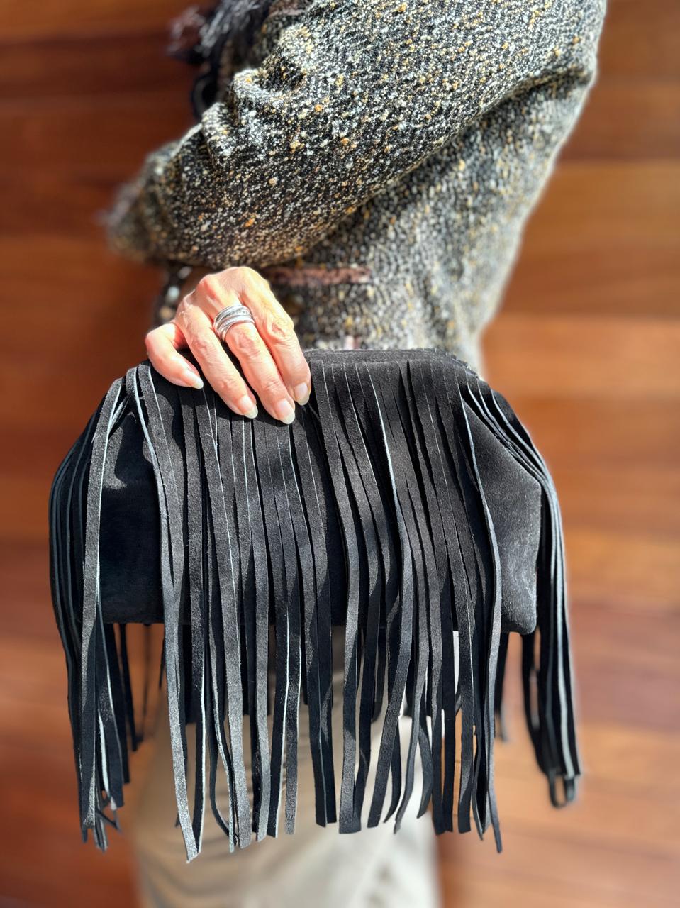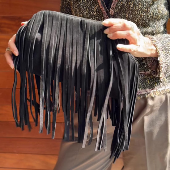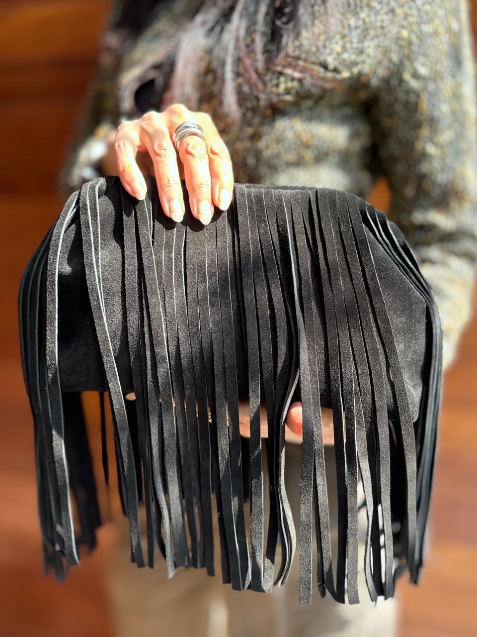 Crafted from genuine Italian suede leather, Kaia embodies effortless individuality. Her flowing fringes move with rhythm and grace — made for the modern bohemian soul.